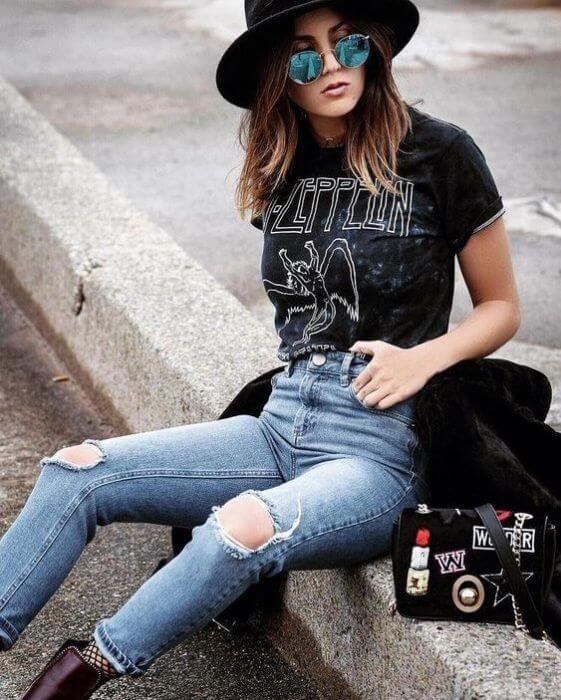 Además de poder crear estilos casuales y deportivos, puedes combinar tus vaqueros rotos con prendas y accesorios de estilo rockero, para crear looks aptos para salidas varias, en cualquier época del año. Con una chaqueta de cuero y un maquillaje con mucha garra, ya puedes lograr un look rockero, sin tener que llevar la camiseta de tu banda favorita (aunque si la quieres llevar, mucho mejor).